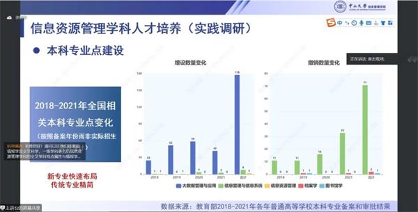張洋教授親臨主會場,作了題為“交叉學科視角下的信息資源管理創新人才培養”的報告,圍繞信息資源管理學科的核心問題,從其知識結構演化和交叉學科特征的角度,分析目前信息資源管理學科在人才培養方面存在的問題及對未來培養復合型人才的若干思考。