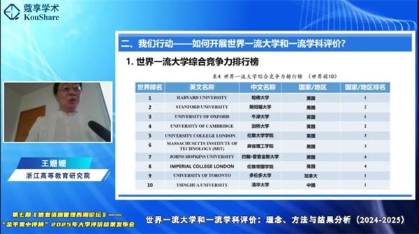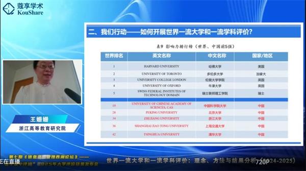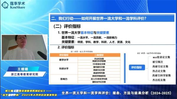 王姍姍副院長解讀世界一流大學評價結果