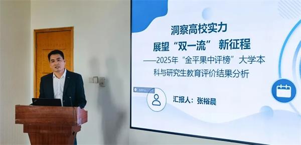 張裕晨副院長從多維度解讀2025年“金平果中評榜”大學本科與研究生教育評價結果,首次發布了城市高等教育競爭力排名。他在報告中梳理了各省排名前3的“雙非”高校以及該校全國排名最高的3個學科,分析第三輪“雙一流”建設潛力院校,為新一輪“雙一流”遴選和教育強國建設提供前瞻性洞察。最后,他建議 “雙一流”建設轉向教育、科技、人才“三位一體”協同發展,建立 “學科貢獻度+區域適配性” 綜合評價體系,破除“唯論文、唯帽子”痼疾,推動“學科集群+城市群”協同發展。
