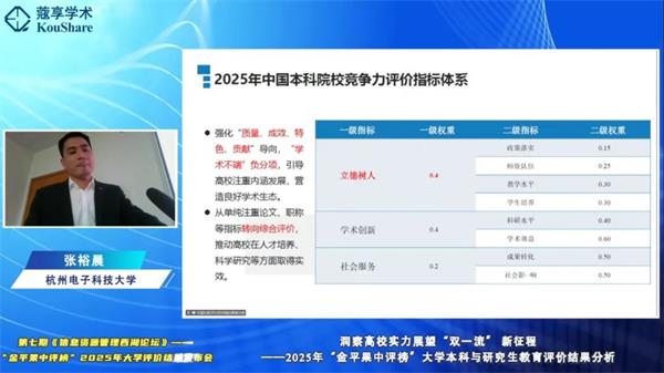 - 第七期西湖論壇發布2025"金平果"大學評價結果