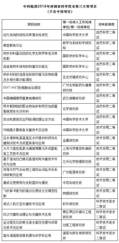 中科院系統(tǒng)20項(xiàng):中科大3項(xiàng)