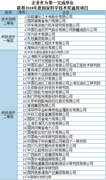 另有29家企業(yè)作為第一單位獲得科技進(jìn)步二等獎(jiǎng)。