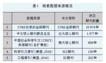 此次檢索和統(tǒng)計(jì)以CNKI為數(shù)據(jù)來(lái)源,收集了2013年1月1日至2017年12月31日各院校在CNKI收錄的全部期刊以及4類常用索引收錄期刊的發(fā)文情況,5類統(tǒng)計(jì)指標(biāo)詳情如表1所示。需要說(shuō)明的是,4類常用索引收錄的期刊存在重復(fù)。