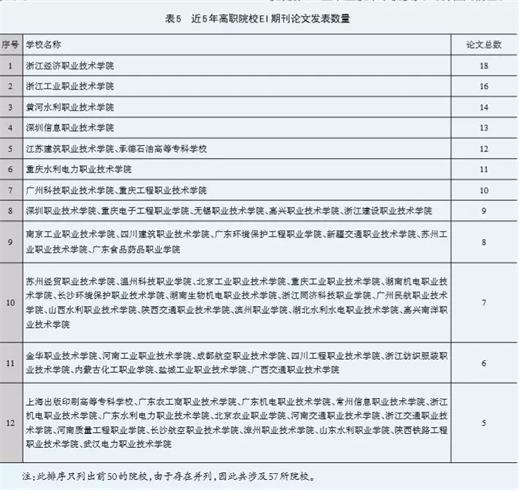 5.高職院校SCI期刊論文發(fā)表數(shù)量