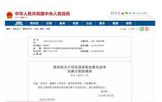 近日,國務院印發了《國務院關于印發國家職業教育改革實施方案的通知》(以下簡稱“通知”),這篇8700多字的文件對職業教育提出了全方位的改革設想,干貨滿滿。