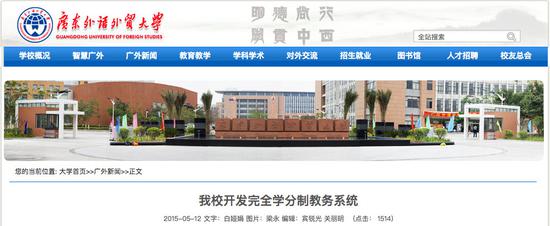 截圖來(lái)源:廣東外語(yǔ)外貿(mào)大學(xué)官網(wǎng)