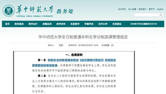 截圖來(lái)源:華中師范大學(xué)教務(wù)處官網(wǎng)