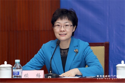 教育部新聞發言人續梅主持發布會。(中國教育報記者 張勁松/攝)