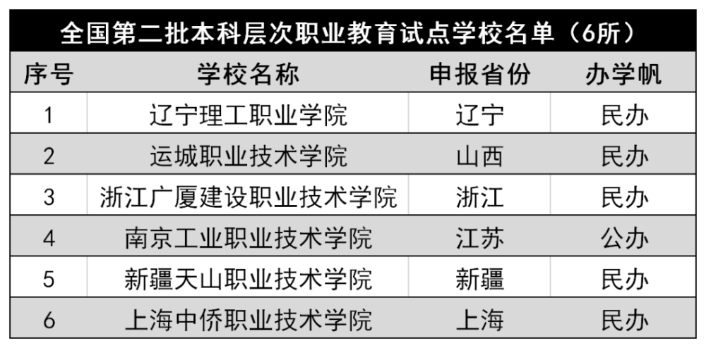 近日教育部正式發布通知同意第二批6所高職院校升格為本科層次職業學校。具體通知如下(排名不分先后):