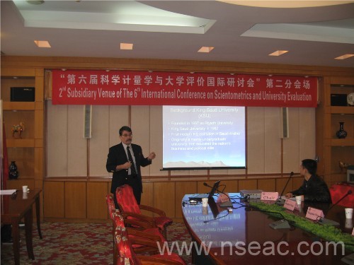 專家發言(二) 發言人:Iskandar Abdullah 主 題:Top Academia:沙特國王大學員工、部門和學院評價系統的發展 11月6日上午,馬來西亞瑪拉大學的Iskandar Abdullah做了以“Top Academia:沙特國王大學員工、部門和學院評價系統的發展”為題的報告。