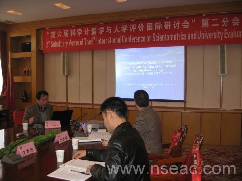 接著,余談到在保持非官方、全面性與連續性的基礎上,他選擇了廣東管理科學研究院、網大、中國校友會、武漢大學中國科學評價研究中心作為研究對象,它們所對應的評價指標體系分別為:武書連排名指標體系、網大排名指標體系、中國校友會排名指標體系、中國科學評價研究中心排名指標體系。他逐一的分析了這四個評價指標體系的設置以及他們的設置理念。