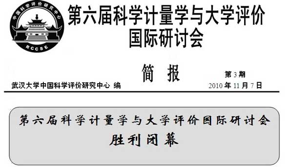 在新近發布的《國家中長期教育改革與發展規劃(2010-2020)》中,黨中央和國務院明確指出要改革教育質量評價和人才評價制度,改進教育教學評價,加快推進專業評價。要鼓勵專門機構和社會中介機構對高等學校學科、專業、課程等水平和質量進行評估。建立科學、規范的評估制度,探索與高水平教育評價機構合作,形成中國特色學校評價模式。可以說,這一規劃為我們所有從事科學計量和大學評價的明確了研究意義、工作目標和發展方向,同時也增強了我們的緊迫感和責任感。在這一時代背景之下,我們召開“第六屆科學計量學與大學評價國際研討會”可謂是順應時事、切合事宜,是貫徹落實《國家中長期教育改革與發展規劃》的重要舉措。我們有理由相信,在本屆會議期間所取得的優秀思想和成果將會被很好的應用到科學計量學和大學評價的實踐活動當中,進一步推動我國教育評價工作的發展、提高我國高等教育的質量。