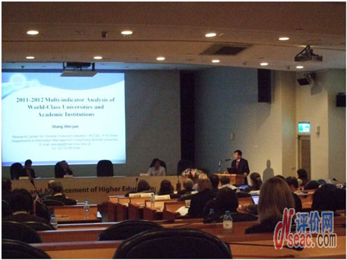 IREG6會(huì)議由JamilSalmi的演講拉開序幕,Salmi是一名全球教育專家,前世界銀行高等教育協(xié)調(diào)員。會(huì)議一共開展了8場不同主題的研討,圍繞著學(xué)術(shù)排名的方方面面展開,從創(chuàng)新到發(fā)展,從方法論的挑戰(zhàn)到改進(jìn),還有被排名機(jī)構(gòu)對(duì)于排名的反響和反饋。王偉軍教授代表中國科學(xué)評(píng)價(jià)研究中心在IREG會(huì)議上發(fā)言,為來自世界各地的大學(xué)排名領(lǐng)域的專業(yè)人士介紹了中心2012年世界一流大學(xué)和研究機(jī)構(gòu)的評(píng)價(jià)結(jié)果與指標(biāo)體系的報(bào)告,引起了與會(huì)代表的強(qiáng)烈興趣和關(guān)注。通過這次參會(huì)和發(fā)言,讓與會(huì)代表認(rèn)識(shí)了中國科學(xué)評(píng)價(jià)研究中心的工作和研究成果。