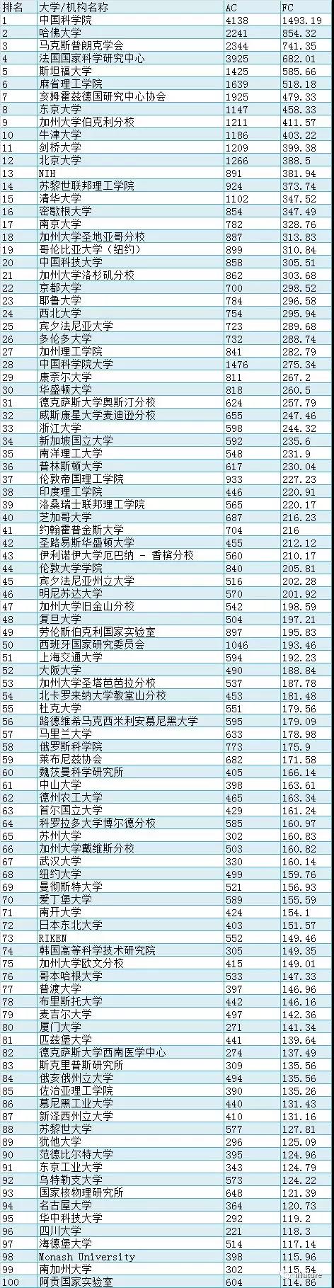 對于全球大學排名,我們發現,中國科學院已經連續多年盤踞著榜首的位置,哈佛大學及馬克思普朗克學會緊隨著其后。在全球大學前100名中,中國有16名大學/研究所進入其中,分別是:中國科學院(第1名),北京大學(第12名),清華大學(第15名),南京大學(第17名),中國科技大學(第20名),中國科學院大學(第28名),浙江大學(第33名),復旦大學(第48名),上海交通大學(第51名),中山大學(第61名),蘇州大學(第65名),武漢大學(第67名),南開大學(第71名),廈門大學(第80名),華中科技大學(第95名),四川大學(第96名)等挺進前100強。有5所大學/研究所進入前20強,已經非常的不錯,這也在側面說明中國在基礎研究領域快速的進步。另外,四川大學及華中科技大學順利的挺進前100名,已經非常出色。