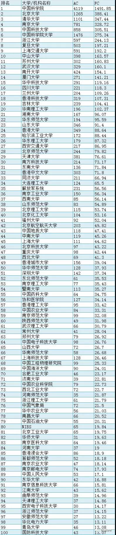 2018最新自然指數排名 中科院全球第一 華科進前100(2)