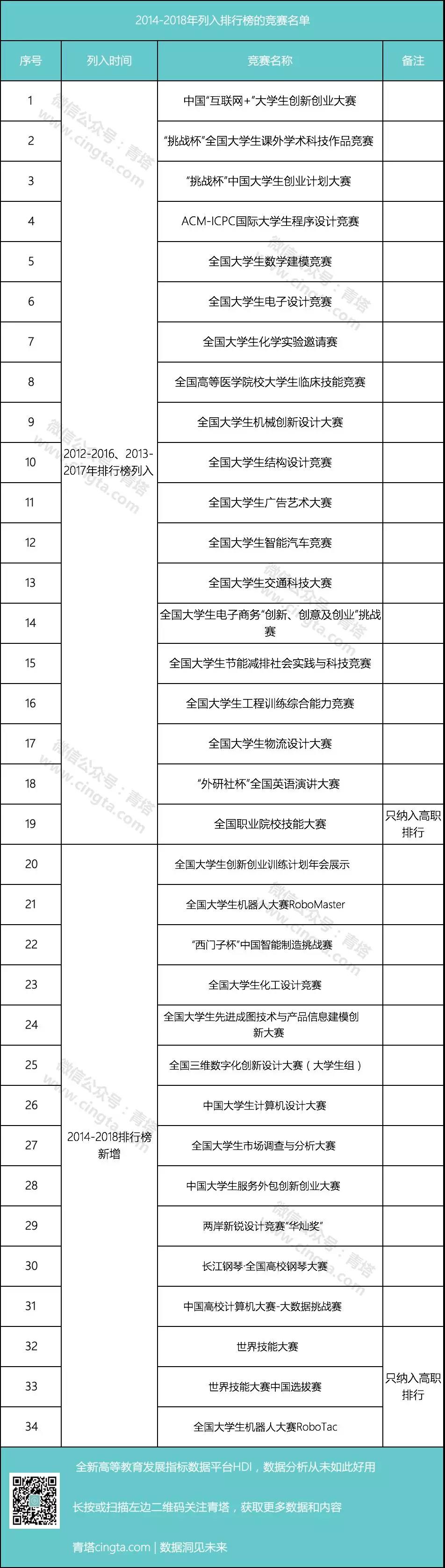 重磅:2014-2018年全國普通高校學科競賽評估結果出爐!