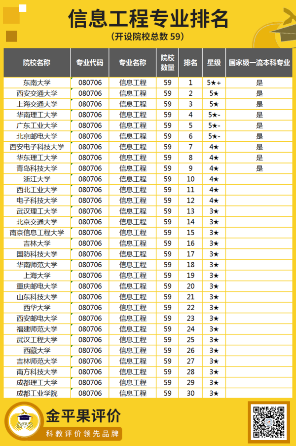這里列出了排名前50%的院校名單,即星級為3星及其以上星級。