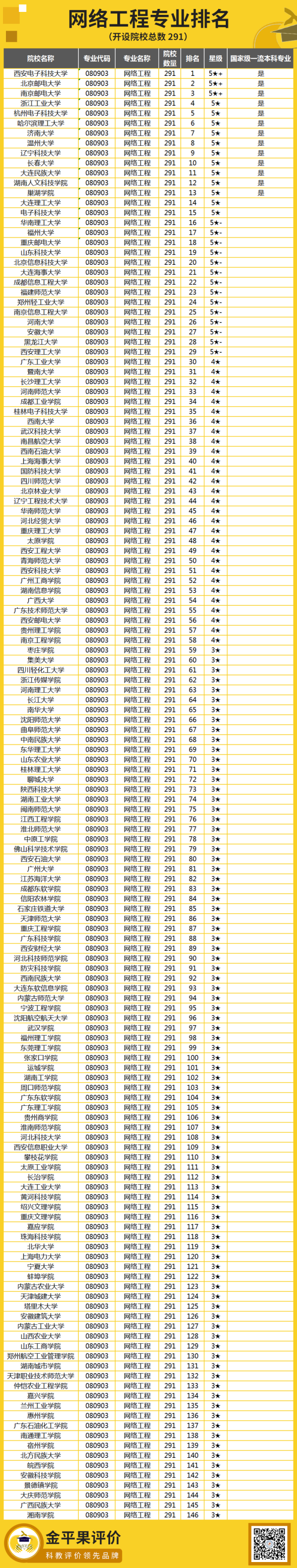 這里列出了排名前50%的院校名單,即星級為3星及其以上星級。