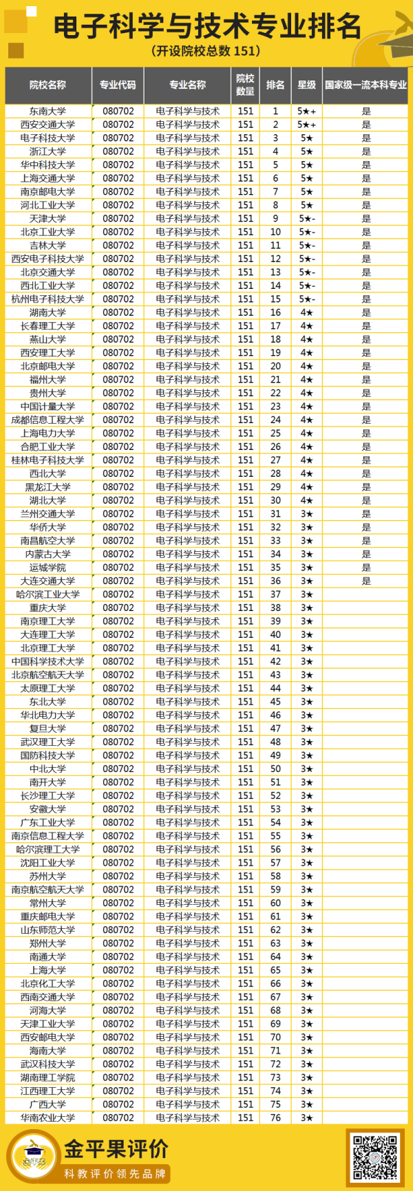 這里列出了排名前50%的院校名單,即星級為3星及其以上星級。