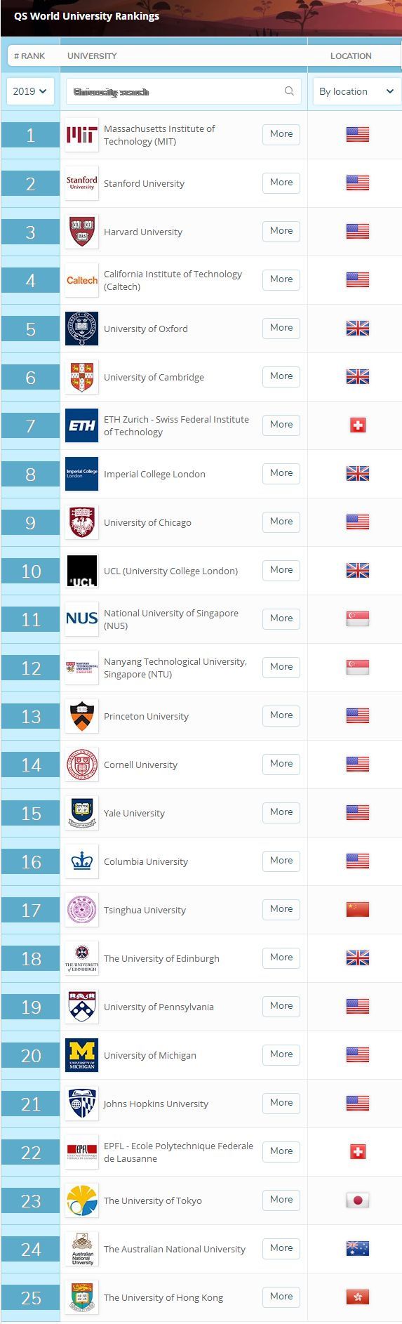 今天一大早,QS世界大學官網公布了最新的2019世界大學排行榜,又提前,太有心機了,肯定是為了搶占先機讓其他兩大世界排名有壓力!