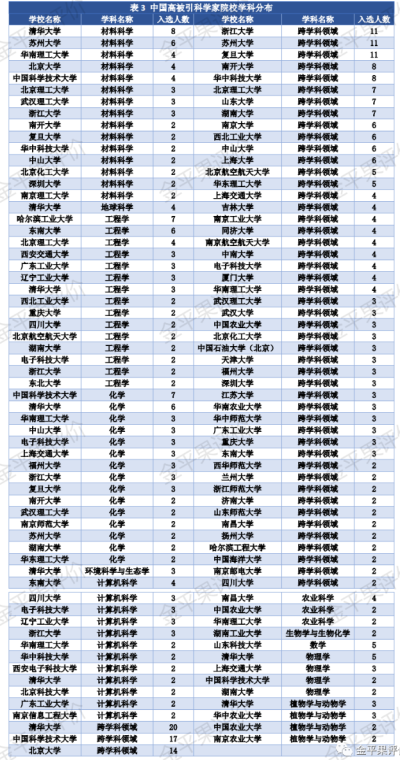 對各個高校的的入選人數(shù)≧2人按學(xué)科分類統(tǒng)計后,發(fā)現(xiàn)清華大學(xué)的材料科學(xué)和跨學(xué)科領(lǐng)域兩個學(xué)科的入選人數(shù)最多,分別是8人和20人。工程學(xué)入選人數(shù)最多的院校是哈爾濱工業(yè)大學(xué)(7人)。化學(xué)學(xué)科入選人數(shù)較多的院校是中國科學(xué)技術(shù)大學(xué)(7人)和清華大學(xué)(6人)。計算機科學(xué)和農(nóng)業(yè)學(xué)科的入選人數(shù)最多的院校分別是東南大學(xué)(4人)和南昌大學(xué)(4人)。除去大部分部屬院校外,蘇州大學(xué)、南昌大學(xué)、深圳大學(xué)、廣東工業(yè)大學(xué)、遼寧工業(yè)大學(xué)、福州大學(xué)等地方院校也表現(xiàn)也極為亮眼。值得一提的是,總共有12名高被引入選科學(xué)家的數(shù)學(xué)學(xué)科中,山東科技大學(xué)竟有5人入選,遠(yuǎn)遠(yuǎn)超過國內(nèi)其他知名高校。
