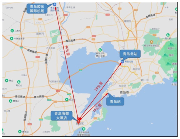 2.青島膠東國(guó)際機(jī)場(chǎng)打車至青島海都大酒店,距離60公里,費(fèi)用約200元,時(shí)間60分鐘左右。