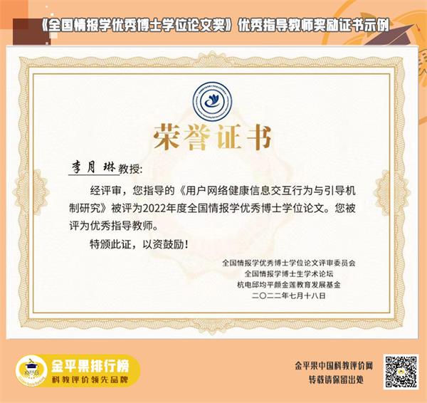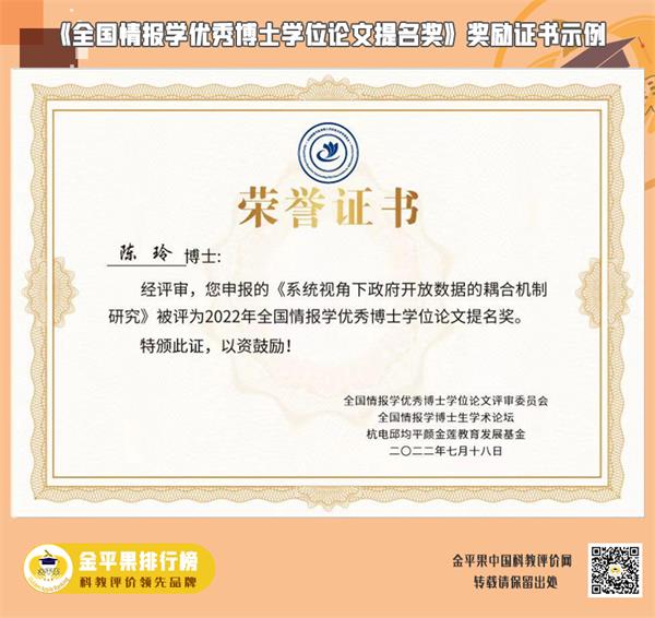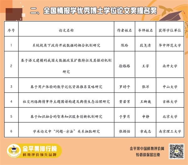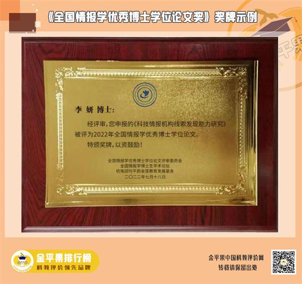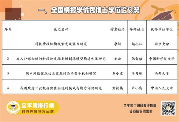 關(guān)于 2022 年“全國情報學優(yōu)秀博士學位論文獎”評審結(jié)果的公告