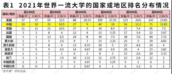 2021年中國高校在世界一流大學(xué)前600強(qiáng)中占比穩(wěn)中有升