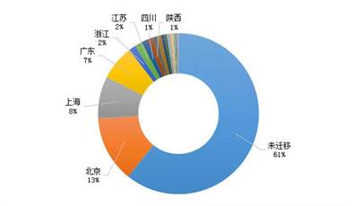 遷移的人群中,有13%的海歸遷往北京,8%的海歸遷往上海,7%的海歸遷往廣東。