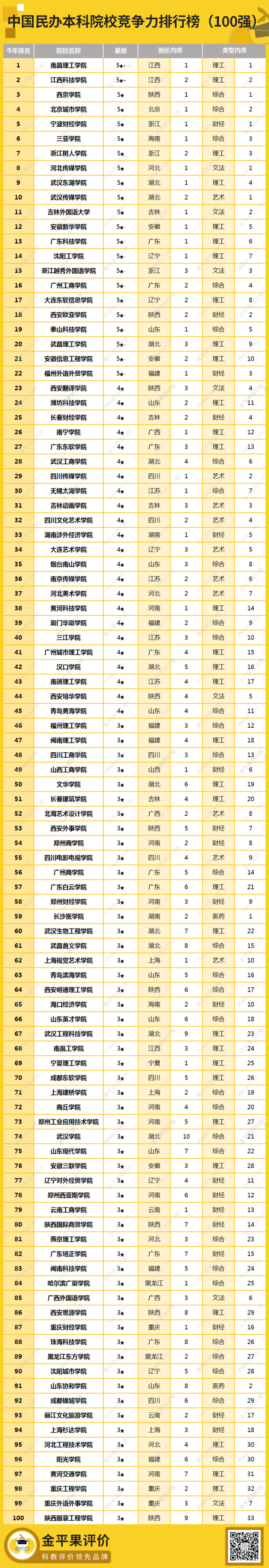 2023年中國民辦本科競爭力排行榜100強新鮮出爐!