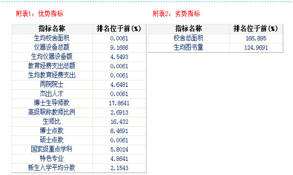 √ 學校本科教育綜合競爭力比較 √ 學校本科教育綜合競爭力基本指標比較 √ 學校研究生教育綜合競爭力比較 √ 學校研究生教育綜合競爭力基本指標比較 √ 學校本科教育專業(yè)競爭力比較 √ 學校研究生教育專業(yè)競爭力比較 √ 學校研究生教育學科競爭力比較 ![]() ◆ 優(yōu)劣勢分析