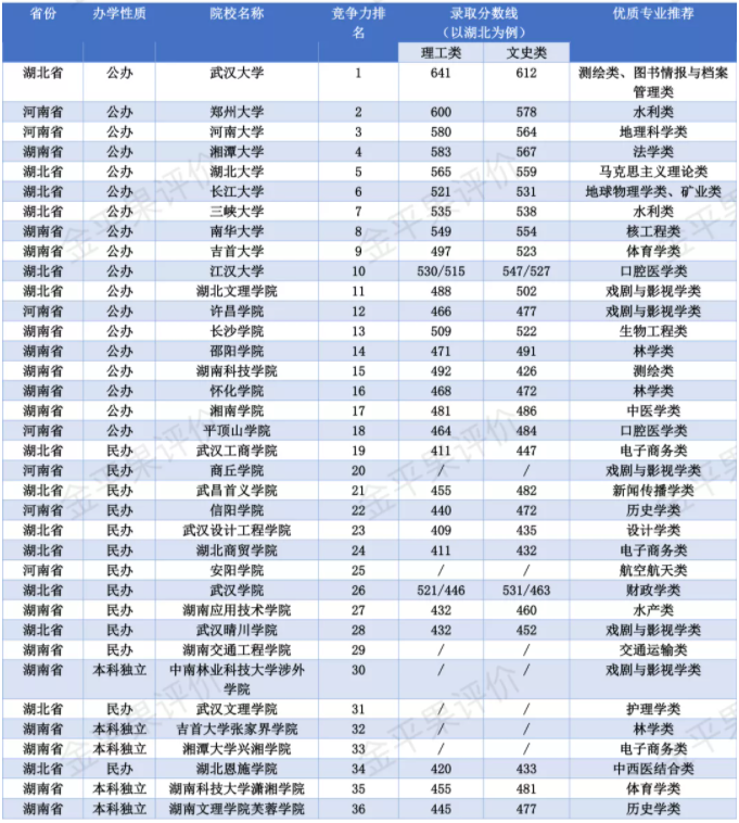 臨近高考志愿填報關鍵期,中國科教評價研究院將陸續推出《大學排名與高考志愿指南》的院校篇和專業篇。 ![]() 其中院校篇分為華東、華北、華中、華南、東北、西南、西北七個篇章,囊括了全國31個省市自治區,共1230所高校的競爭力排名情況、去年錄取分數線以及優質專業推薦等重要信息。每個篇章依據學校類型依次分為綜合類、財經類、師范類、理工類、醫藥類和農林類。因獨立學院轉設問題,部分獨立學院的辦學性質和院校名稱仍沿用原名稱。專業篇依據麥可思研究院發布的《2020年中國大學生就業報告》選出就業薪酬排名前十的熱門專業類做一個院校大盤點,主要涉及計算機類、電子信息類、自動化類、儀器類、電子商務類、金融學類、交通運輸類、管理科學與工程類、數學類、財政學類。相關內容將會陸續推出,敬請期待! 專家建議: 志愿填報是人生的一個重要選擇,涉及了院校選擇(發展城市)、專業選擇(競爭跑道)等。總體上建議考生應結合自身的未來發展規劃、性格天賦、興趣導向來報考。但對不同分數段考生,我們也提供了以下一些建議: 1、高分段(一般是一本線20分以上)學生建議以院校優先考慮,爭取進入實力較強的院校,專業如不滿意還可以爭取轉專業的機會。 2、中低分段(一般是本科線到一本線)學生建議專業優先考慮,進入一個自己有優勢,與自己未來職業規劃更匹配的專業,在擅長的領域實現彎道超車。 3、無論采用哪種選擇策略,都要注意設置志愿方案的沖、穩、保梯度,控制風險。 4、獨立學院轉公的,分數預計會上升;轉民辦的,分數預計會有所下降;轉設方案未定的,可能會出現分數波動,有可能出現撿漏的機會。 華中地區包含河南省、湖北省和湖南省。其中,湖北省高校有68所,數量上是除江蘇省外,我國第二大高等教育大省。而2021年河南省高考報名人數以125萬的穩居第一,超過山東省約45萬人。 華中地區以湖北省的錄取分數線為例,分為理工類和文史類,其綜合類院校共36所。綜合競爭力排名第一的武漢大學錄取分數線分別是641分(理工)和612分(文史),其優質推薦專業是測繪類和圖書情報與檔案管理類。綜合競爭力排名第二的鄭州大學錄取分數線分別是600分(理工)和578分(文史),其優質推薦專業是水利類。具體情況如下表所示。 報考建議:位于600分左右的考生,謹慎選擇報考院校,謹防出現報考扎堆現象,建議擴大報考院校地區或擴展院校類型。不同分數段的考生要綜合考慮城市+院校+專業組合的優先順序,找出最優解。 華中地區綜合類院校排名情況 ![]()