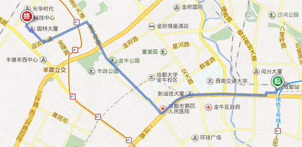 線路3:地鐵1號(hào)線,火車北站---天府廣場(chǎng)轉(zhuǎn)乘地鐵2號(hào)線-----至迎賓大道C/D口---乘坐社區(qū)巴士1051(興盛西路站)