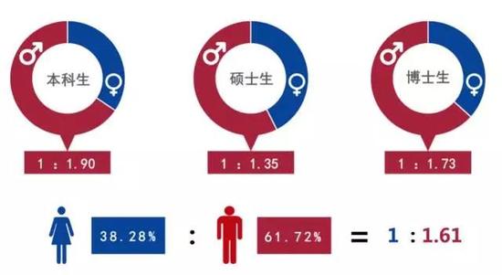 2017年8595名畢業(yè)生中,男生5305人,占畢業(yè)生總?cè)藬?shù)的61.72%;女生3290人,占畢業(yè)生總?cè)藬?shù)的38.28%。畢業(yè)生男女性別比例為1.61:1。