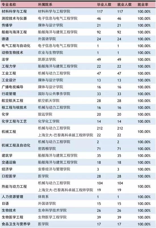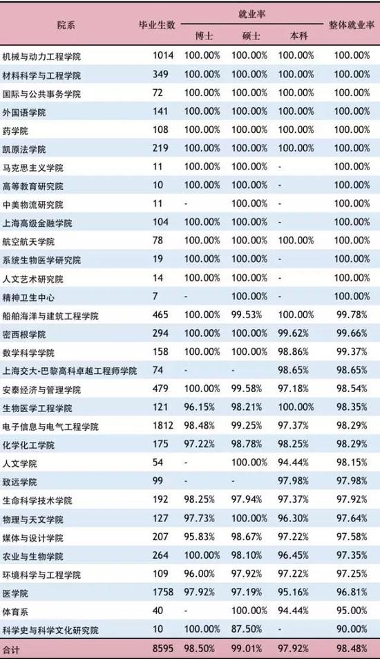 2017年上海交通大學(xué)本科、碩士和博士畢業(yè)生的就業(yè)率分別為97.92%、99.01%和98.50%。