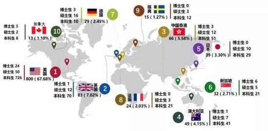 2017 年畢業(yè)生中選擇出國(境)深造(含出國做博士后)的學(xué)生共計1182人,其中博士生43人,碩士生129人,本科生1010人。