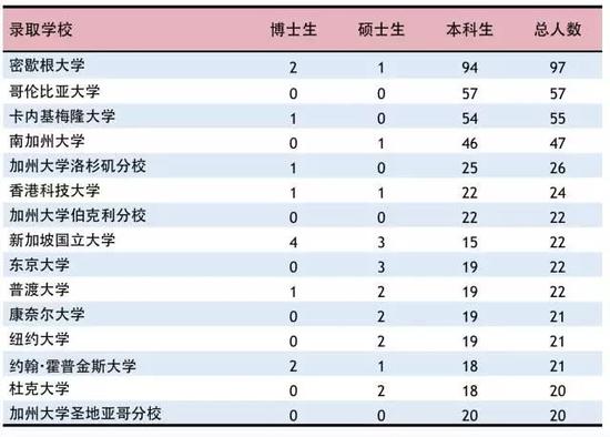 錄取上海交大畢業(yè)生排前三位的國(境)外高校分別是密西根大學(xué)(University of Michigan)、哥倫比亞大學(xué)(Columbia University)和卡內(nèi)基梅隆大學(xué)(Carnegie Mellon University)。