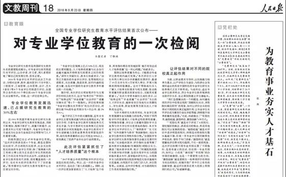 《人民日報》刊發《全國專業學位研究生教育水平評估結果首次公布——對專業學位教育的一
