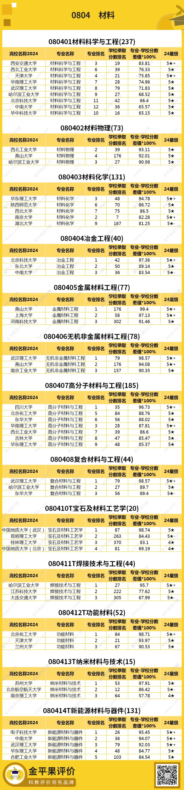 材料學科培養具備材料科學與工程方面的基礎理論與基本技能,并具有較強的管理能力,能在工業生產、科研部門及工程領域從事材料加工成型、工程應用、微觀結構分析、新材料研究與開發等技術工作,并富有創新精神和實踐能力的高素質工程技術人才。在教育部公布的學科目錄中,材料類學科下主要設有材料科學與工程、材料物理、材料化學、冶金工程、金屬材料工程、無機非金屬材料工程、高分子材料與工程、復合材料與工程、粉體材料科學與工程、寶石及材料工藝學、焊接技術與工程、功能材料、納米材料與技術、新能源材料與器件14個專業。