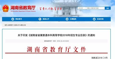 前不久,湖南省教育廳印發《湖南省省屬普通本科高等學校2018年招生專業目錄》。
