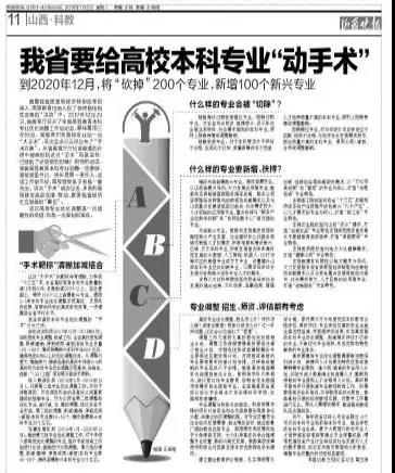 這次“大手術”的靶標非常清晰,力爭到“十三五”末,全省高校現有本科專業數量削減15%到20%,總數削減200個以上。在此基礎上,增設100個以上急需新興專業。遴選3-5所本科專業優化調整示范高校,支持條件成熟、有帶動作用的高校率先改革,一步調整到全省平均水平。